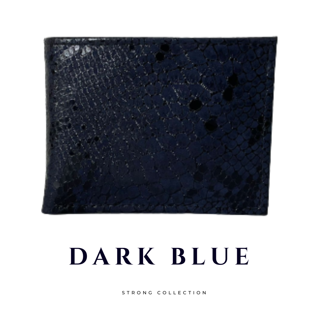 Billetera elaborada artesanalmente en cuero con estampado serpi.