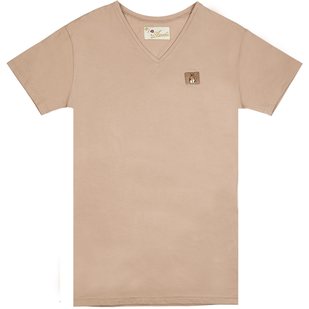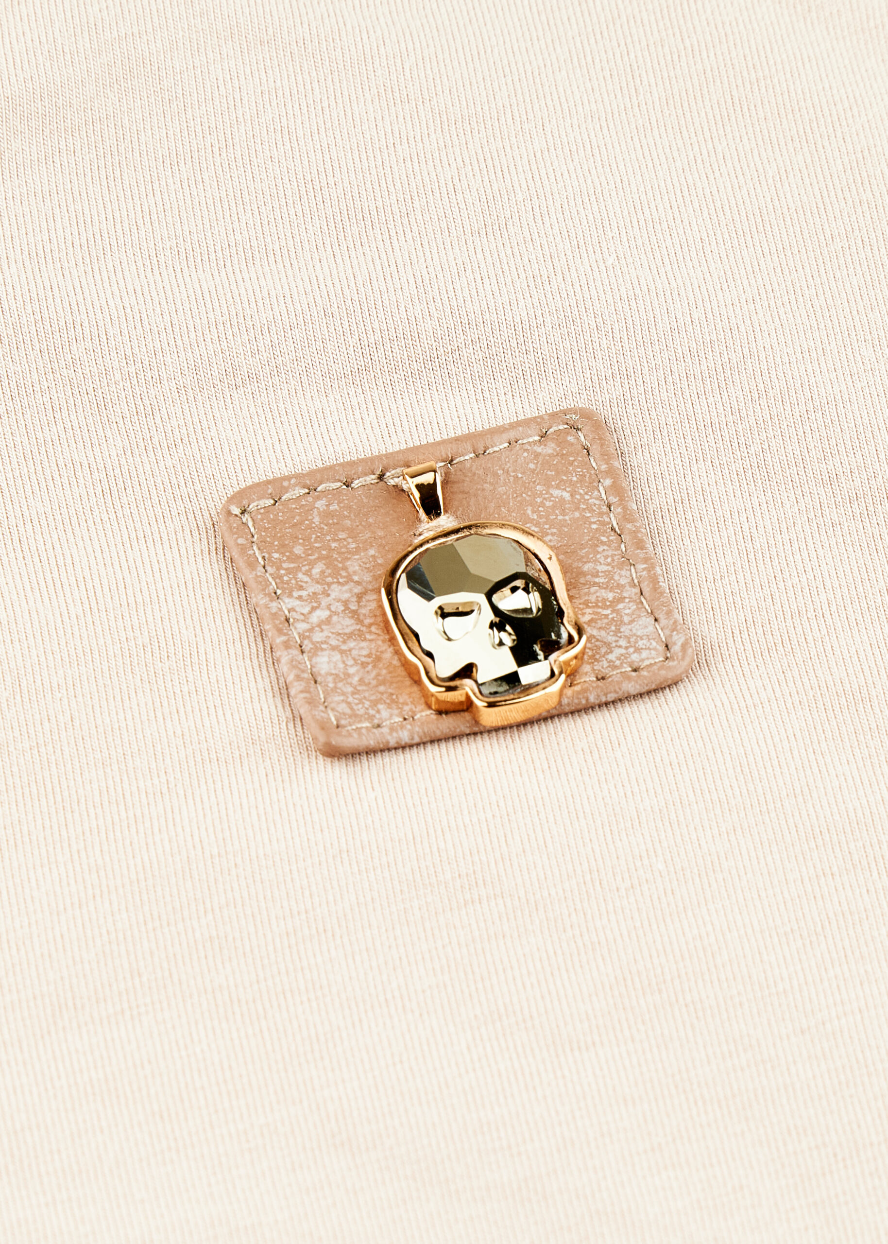 Camiseta cuello v en algodón licrado con detalle en calavera swarovsky